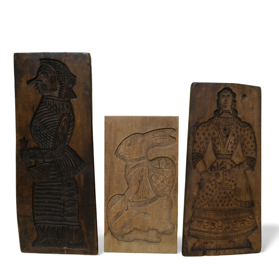 Lot van 3 grote koekplanken met onder andere een voorstelling van een haas en twee vrouwen.