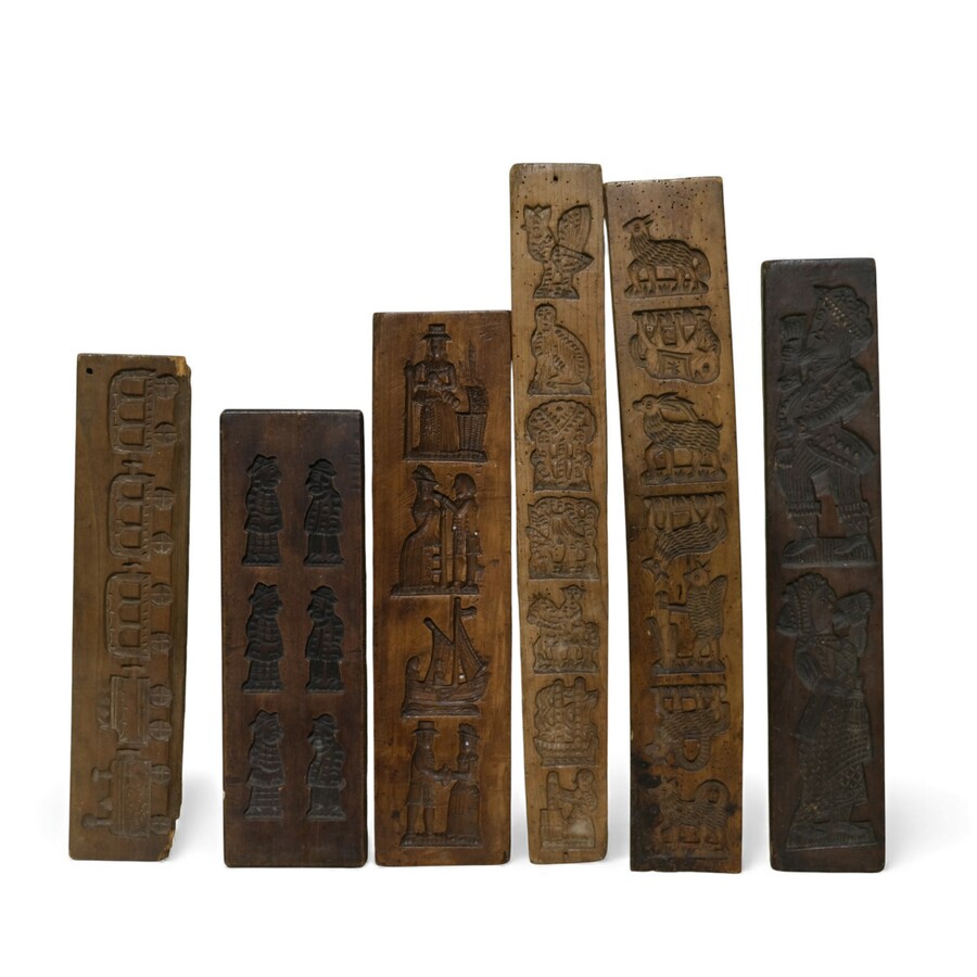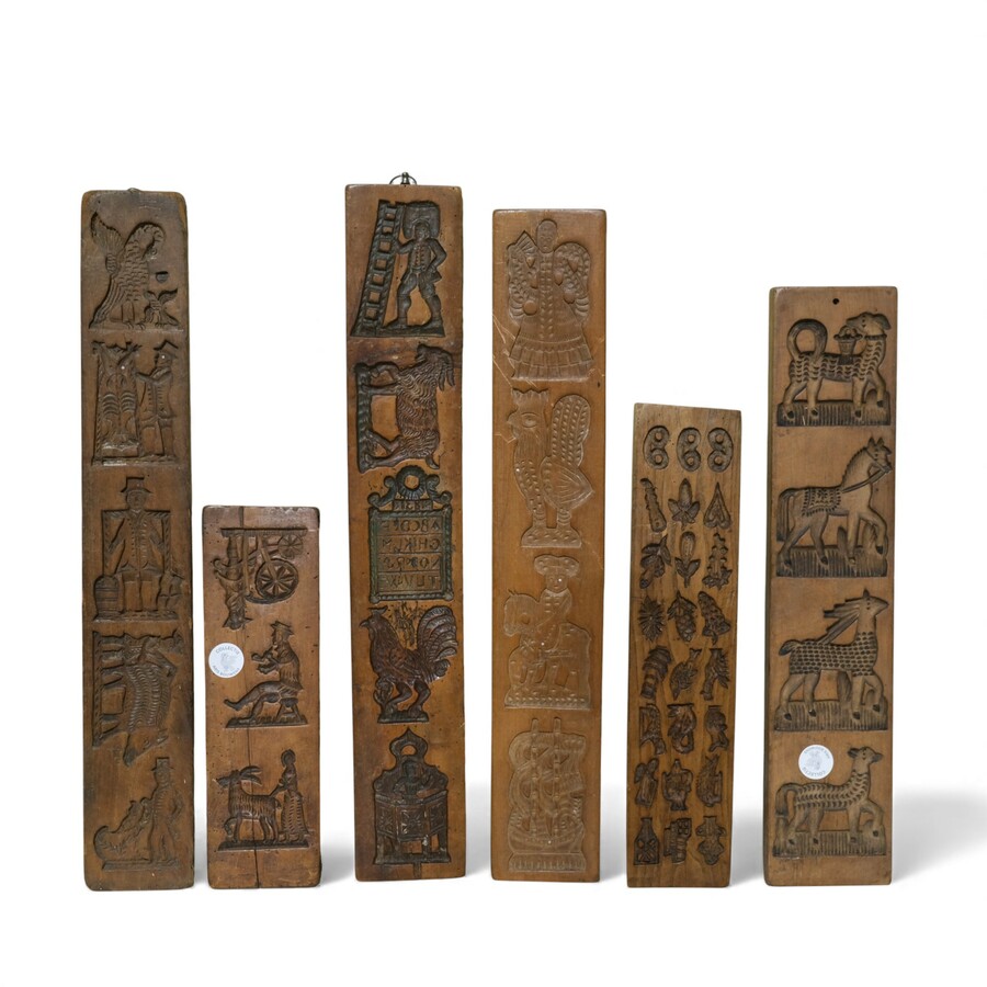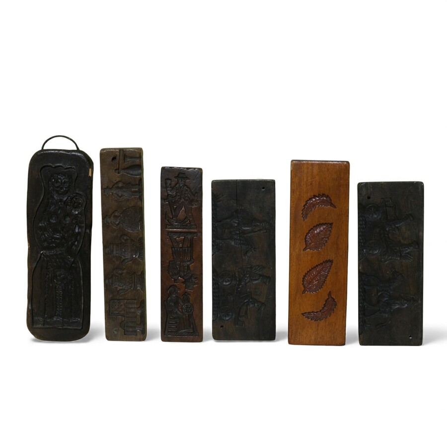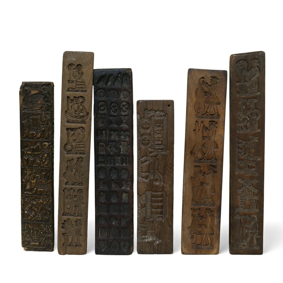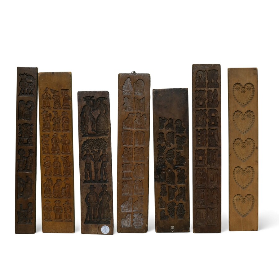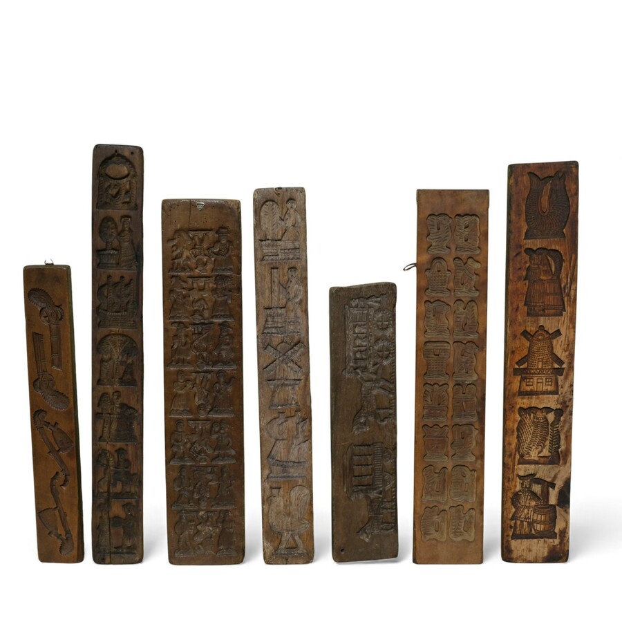 Lot koekplanken met onder andere een voorstelling van ruiter en paard, molens en diverse personen en dieren.