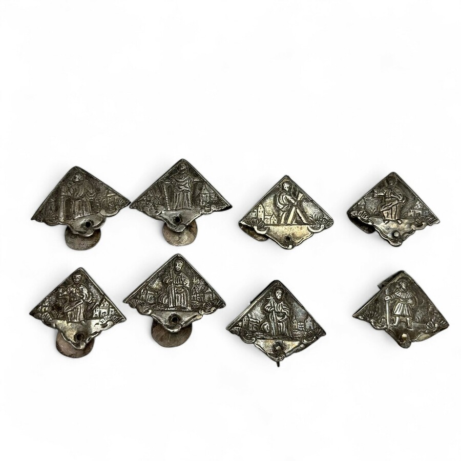Acht 18e eeuwse zilveren hoekstukken, Theodorus Pas Leeuwarden