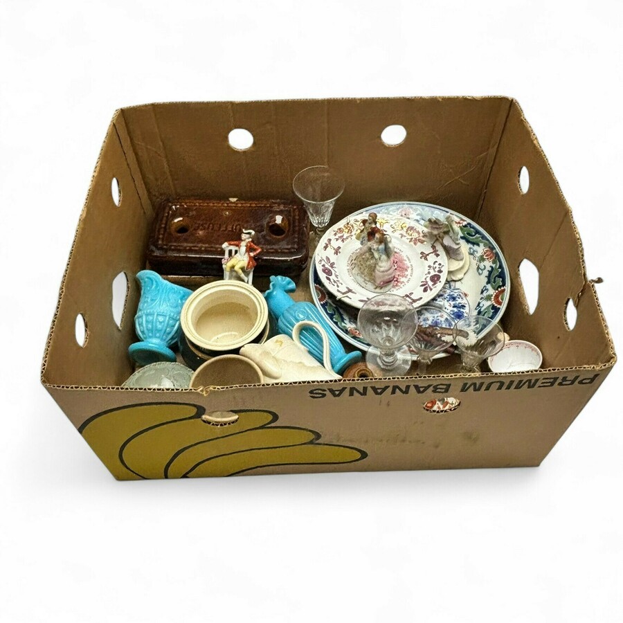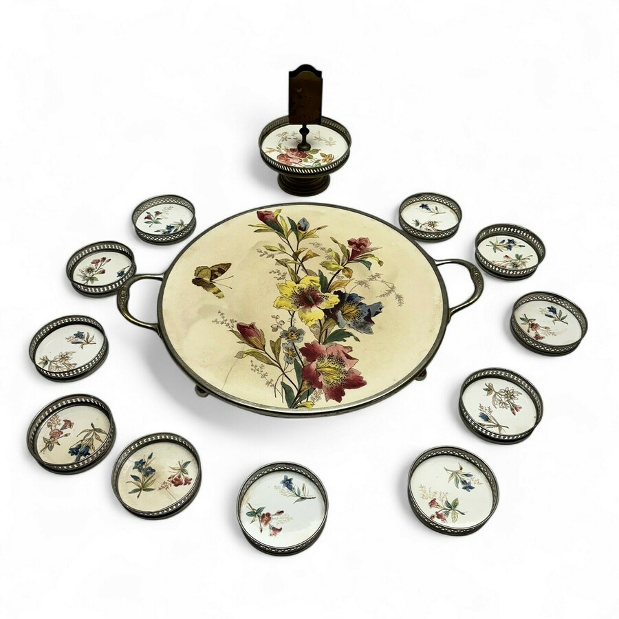 Lot divers porselein in nikkelen montuur