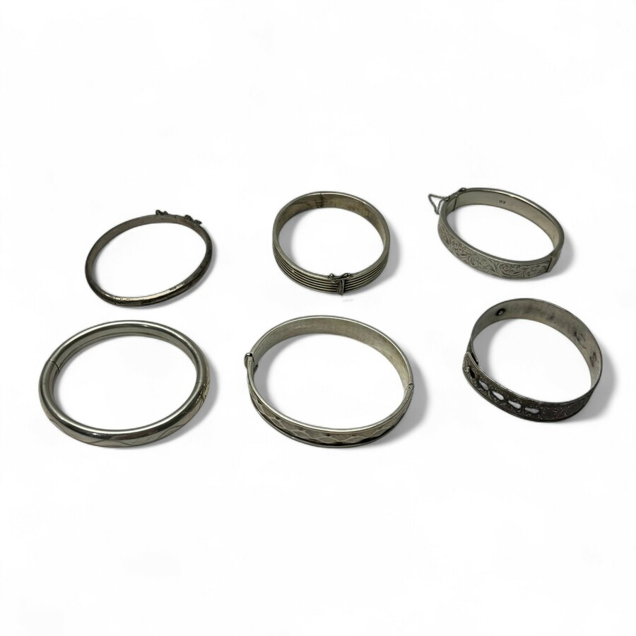Lot van zes tweede gehalte (835/1000) en eerste gehalte (925/1000) zilveren slavenarmbanden, diverse modellen