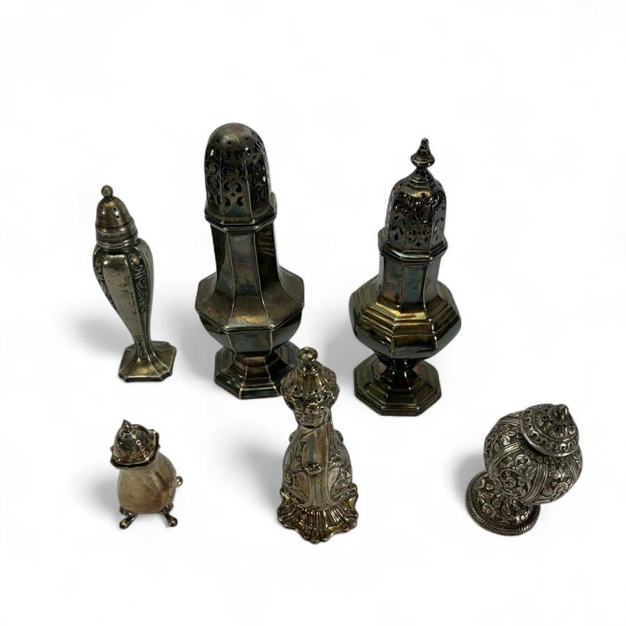 Lot diverse 20e eeuwse zilveren en verzilverde strooiers, o.a. Engels