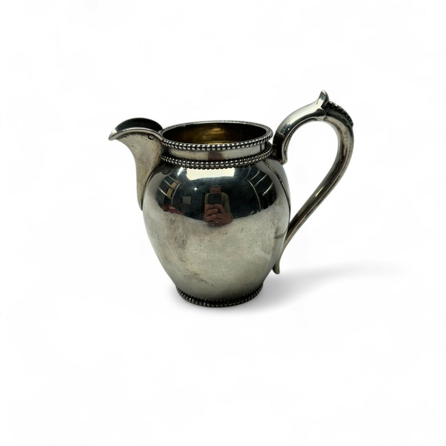Een tweede gehalte (835/1000) zilveren roomkan. versierd met parelranden.