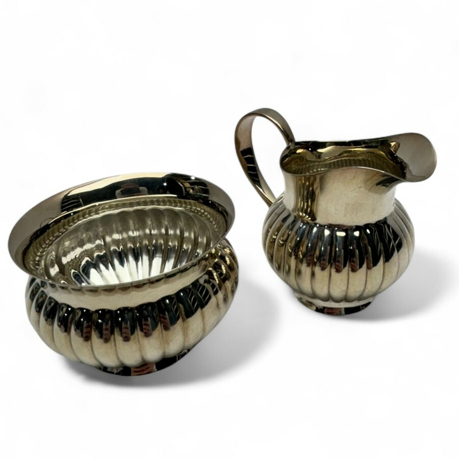 Een 20e eeuws eerste gehalte (925/1000) zilveren roomstel, aan de onderzijde gemerkt '925 Sterling'.