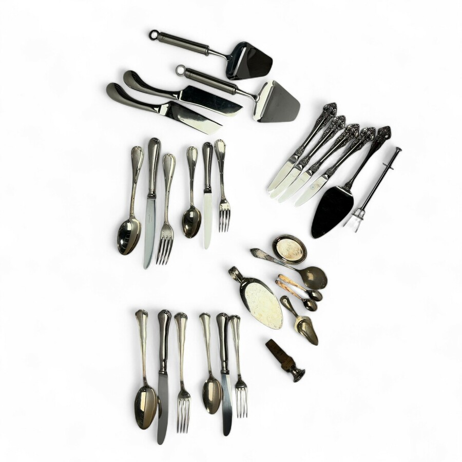 Lot divers, waaronder verzilverd Christofle, Wilkens en Sola Elite bestek, een tweede gehalte (835/1000) zilveren taartschep, van Kempen