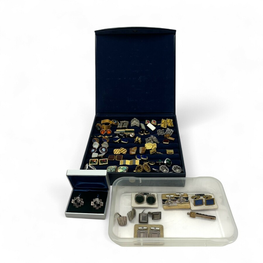 Lot van 42 paar 20e eeuwse manchetknopen. Diverse exemplaren, waaronder enkele tweede gehalte (835/1000) zilveren exemplaren
