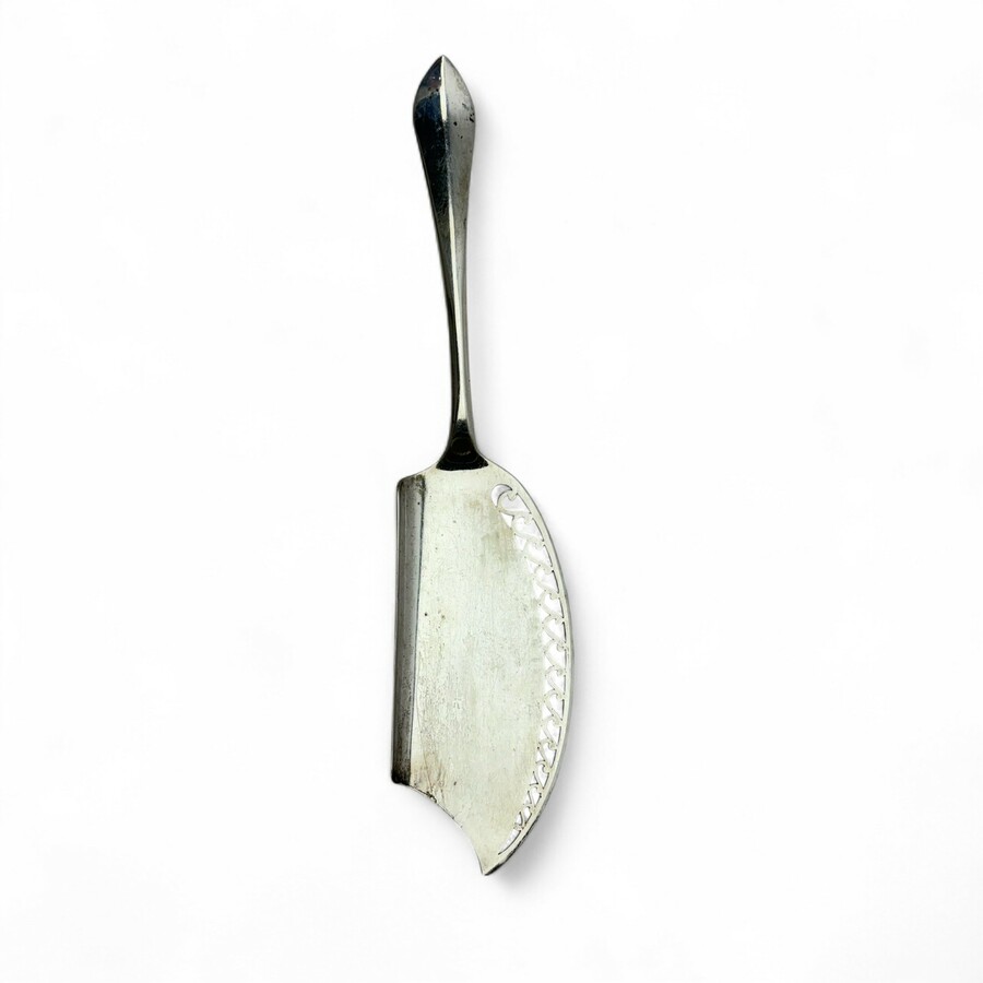 Een vroeg 20e eeuwse tweede gehalte (835/1000) zilveren visschep, gemerkt Begeer, Utrecht. Jaarletter G (1916).