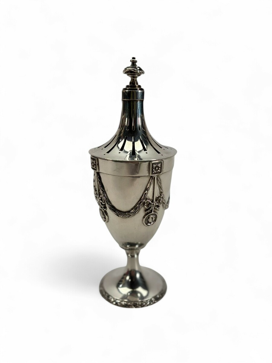 Een antieke zilveren strooibus