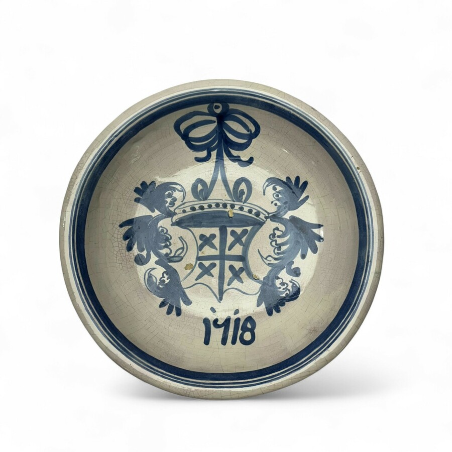 Fries aardewerken wapenschotel, gedateerd 1718