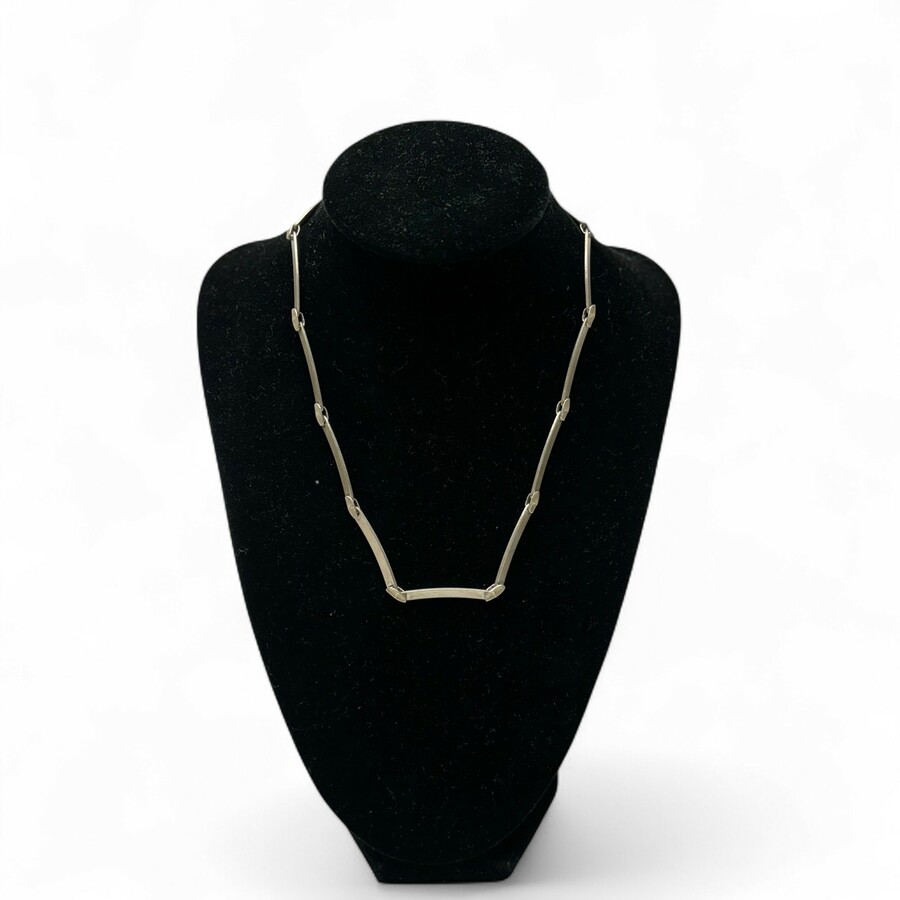 Een 20e eeuws eerste gehalte (925/1000) zilveren collier, gematteerd. Ontwerp Björn Weckström voor Lapponia, model ‘Labyrinth’, jaarletter S8 (1995).
