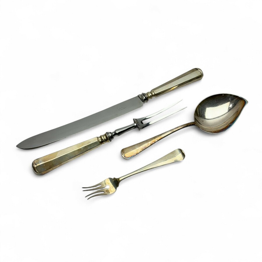 Lot divers zilver, waaronder een tweede gehalte (835/1000) zilveren vlaschep, van Kempen en Begeer en een tweede gehalte zilveren Haags Lof vleesmes- en vork,