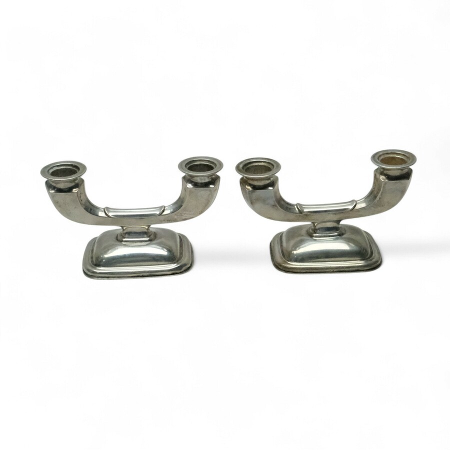 Lot van twee 20e eeuwse art deco tweede gehalte (835/1000) zilveren kandelaars. Aan de onderzijde gemerkt Boden Unecht.