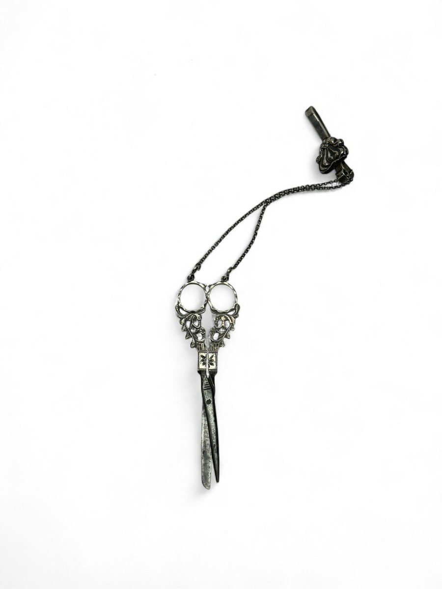 Antiek tweede gehalte (835/1000) zilveren Fries oorijzer. Met twee bewerkte sierknoppen. Geen jaarletter maar vroeg 20e eeuws.