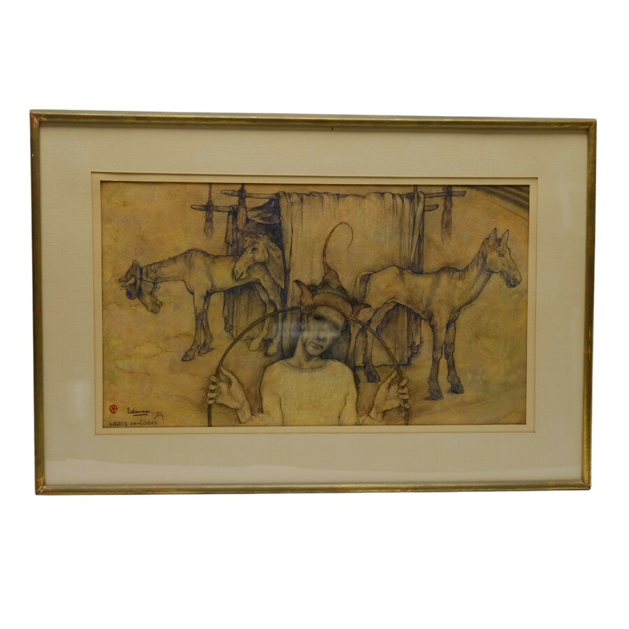 Gemengde techniek op papier. ‘Petites coulisses’. Linksonder gesigneerd Nikolaas Matthijs Eekman (Brussel 1889 – Parijs 1973).