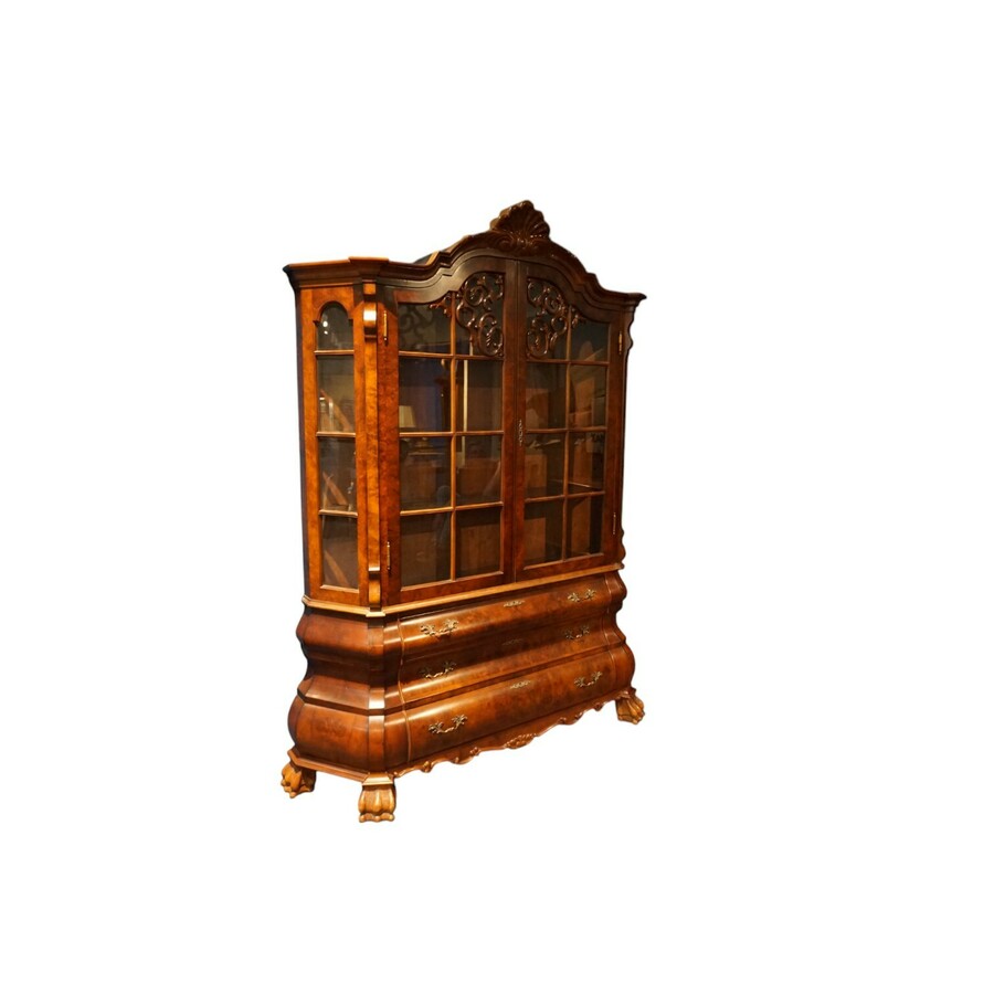 Een 20e eeuwse tweedeurs porseleinkast, met lades en klauwpoten.