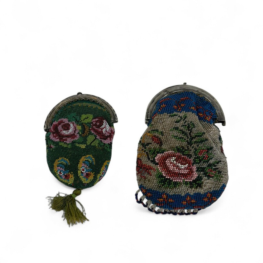 Twee tweede gehalte (835/1000) zilveren beursbeugels aan kralentasjes