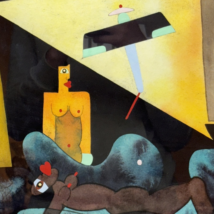 Kleurenets op papier, titel 'Nachtvlucht'. Rechtsonder gesigneerd Holly Witteveen (Leeuwarden, 1948), gedateerd 2000. Oplage 26/100.