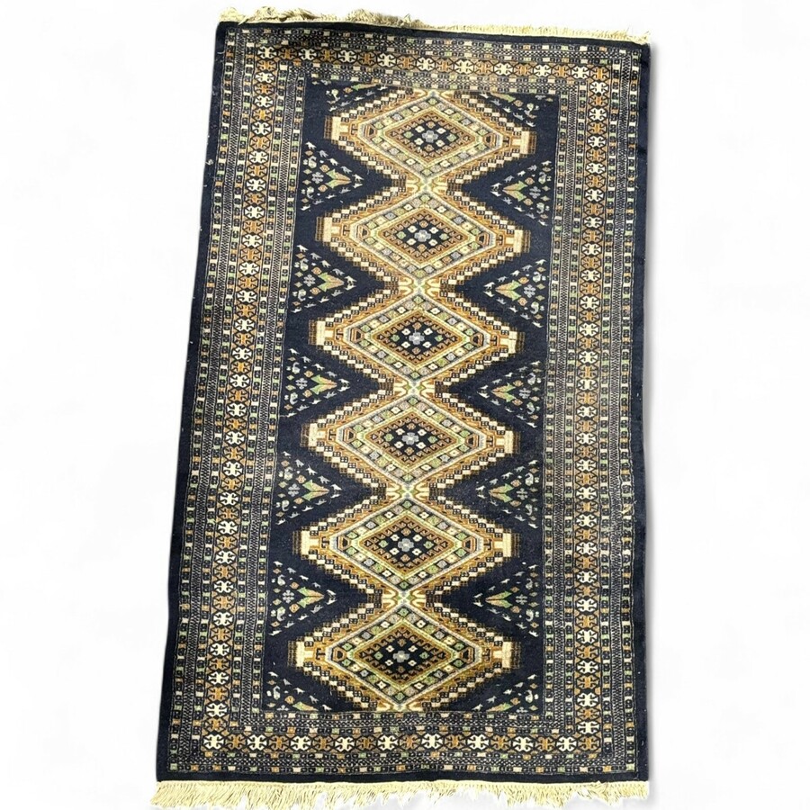 Een 20e eeuws wollen Perzisch tapijt in blauwe tinten