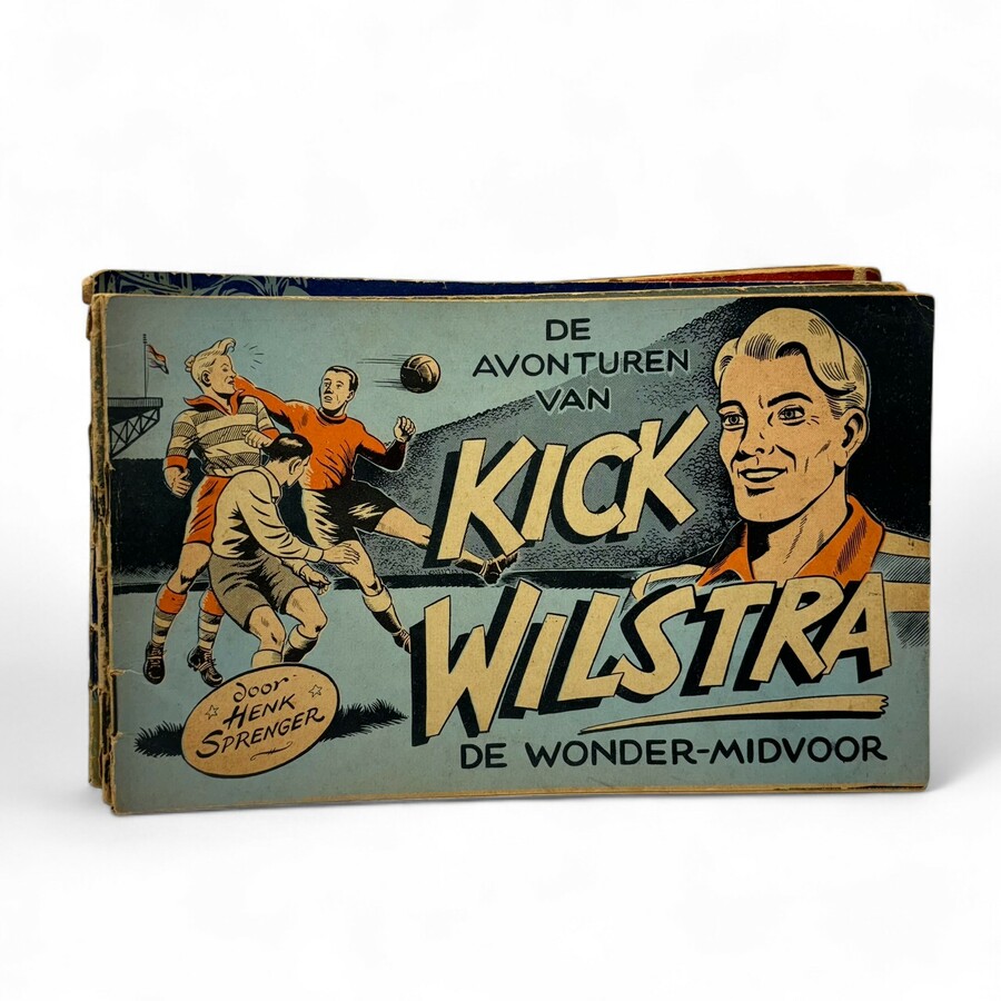 Veertien delen van het tijdschrift 'De avonturen van Kick Wilstra - de wonder midvoor', door H. Sprengers, deel 1, 2, 3, 4, 6, 7, 10, 11, 12, 13, 14, 15, 16 en 17, uitgave van Het Parool, jaren ...