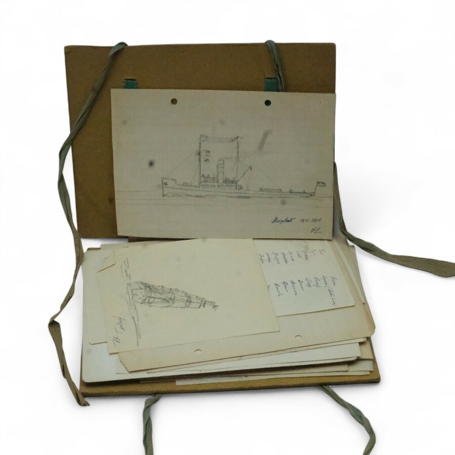 Mapje met daarin diverse originele tekeningen uit de periode rond 1894/1895, o.a. zelfportret Tissot van Papot met vrouw, 1896-1897, getekende kaart van Groot-Atjeh 1902, getekende kaart van oo...