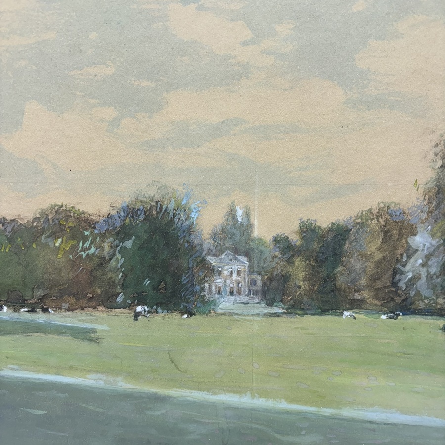 Anton Smeerdijk (1885-1965). Aquarel//gouache op papier Landhuis tussen de bomen. Linksonder gesigneerd.