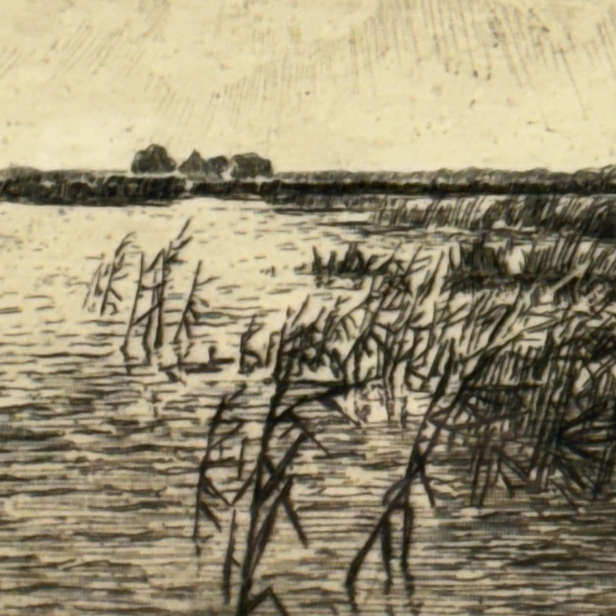Ids Wiersma (1878-1965). Ets op papier. Fries waterlandschap. Gesigneerd in de plaat en met potlood.