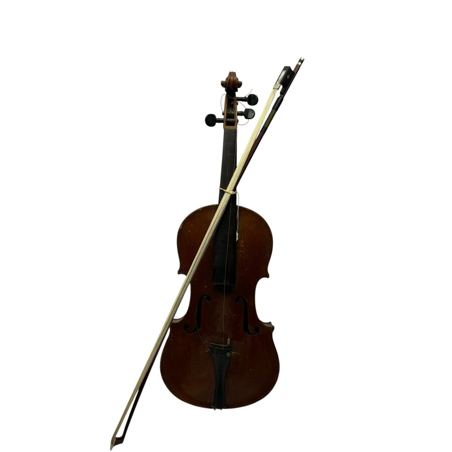 Een viool met strijkstok, niet gemerkt.