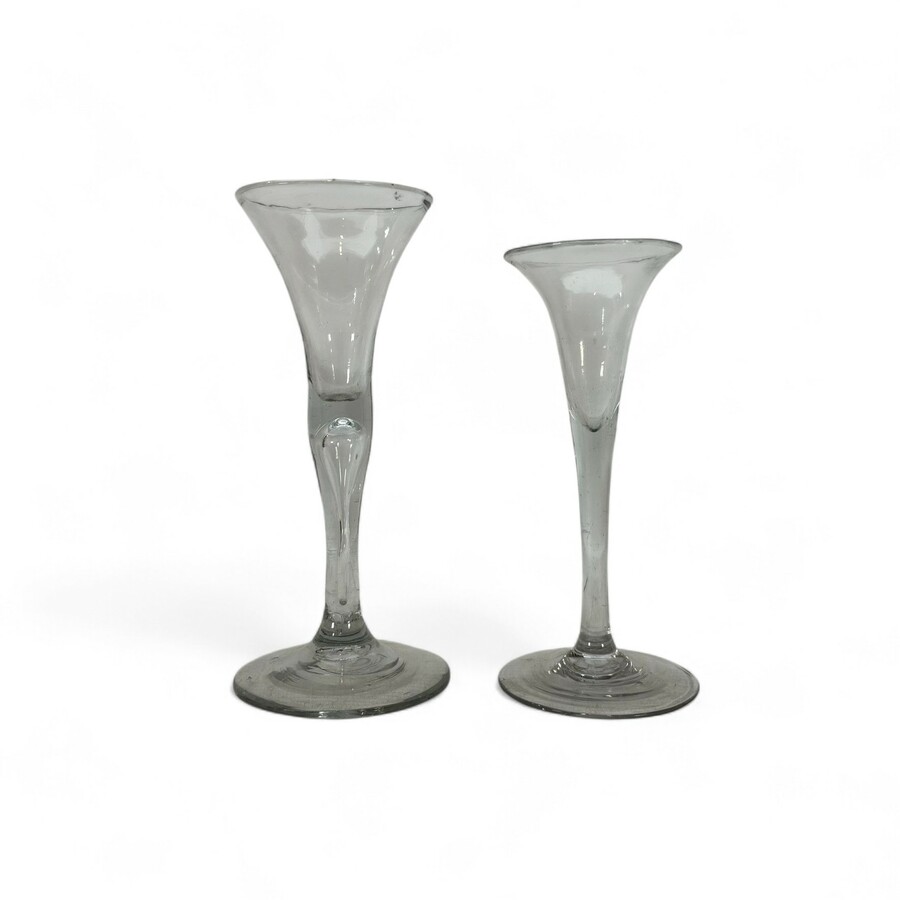 Lot van twee 18e eeuwse glazen, flutes.