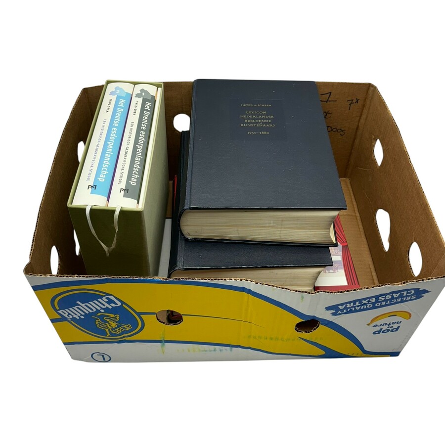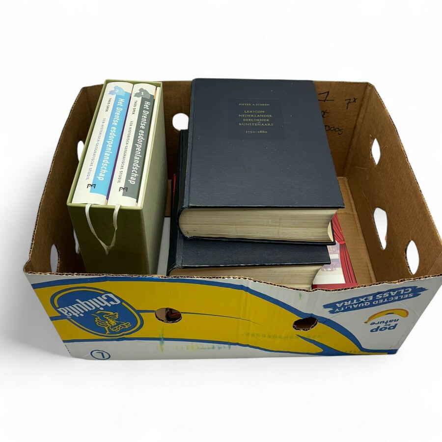 Lot van zeven diverse boeken, waaronder: tweemaal 'Lexicon Nederlandse beeldende kunstenaars 1750-1880', door Pieter A. Scheen, gelijknamige uitgeverij, 's-Gravenhage, 1981, en 'Het Drentse esdo...