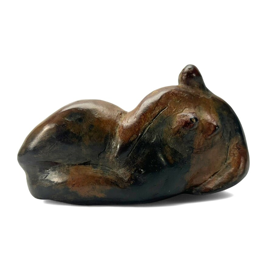 Een 20e eeuws gepatineerd bronzen sculptuur, voorstelling van een liggende vrouw. Aan de onderzijde gemonogrammeerd Evert van Hemert (Haarlem 1952 - 2022).