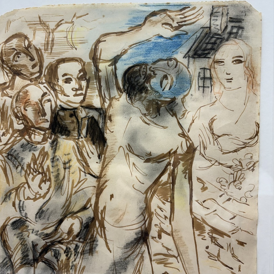 Tekening gemengde techniek op papier, ,5 cm. Voorstelling: Job op de Dung heuvel. Gesigneerd Mattheus Wiegman (1886-1971). Cadeau van Wiegman aan Jan Wiegers. Provenance: Nalatenschap Jan Wieger...