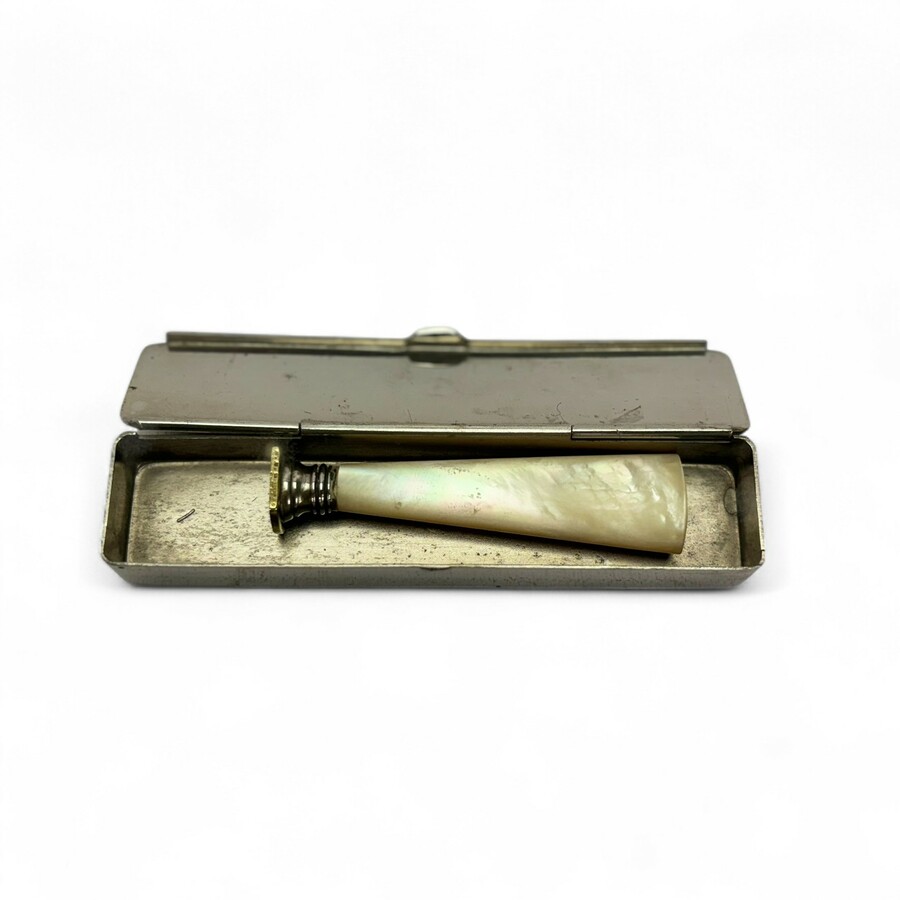 Een antieke parelmoeren lakstempel in doosje