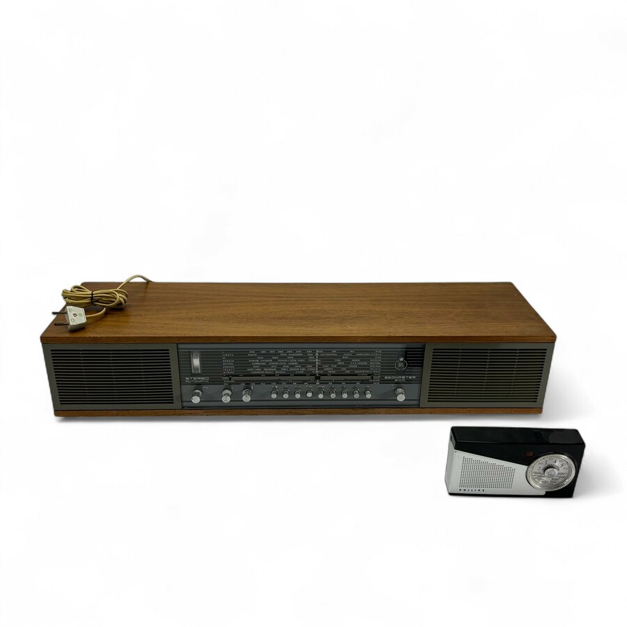 een jaren '60 radio, Bang & Olufsen, model 900. Met daarbij een Philips L1X75T/01 transistorradio, jaren '50.