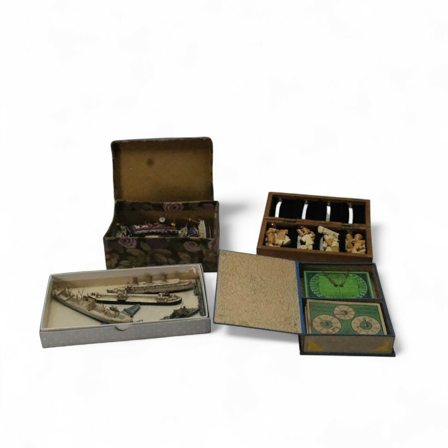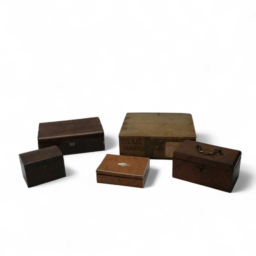 Lot van vijf houten kistjes, 19e en 20e eeuws.