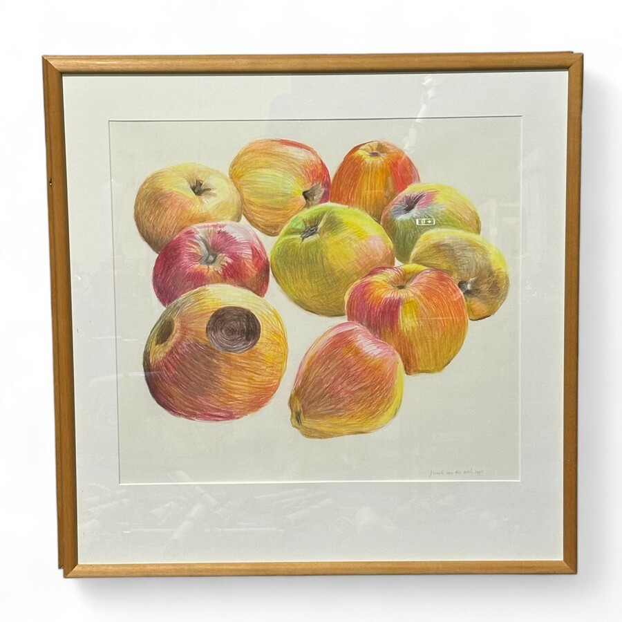 Potloodtekening op papier, voorstelling van appels. Gesigneerd Freark van der Wal (Oppenhuizen, 1955), gedateerd 1995.