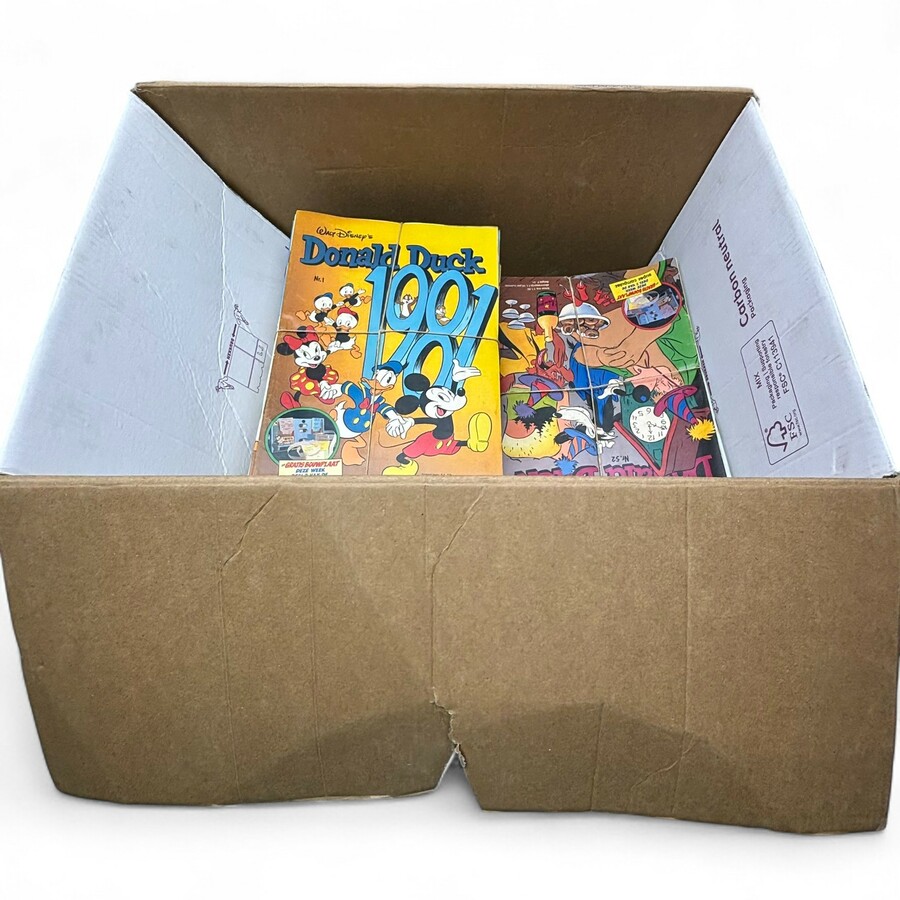 Verzameling diverse stripboeken, circa 50 stuks, waaronder: 'Storm-de Kronieken van Pandarve', 'Opkomst en ondergang van het keizerrijk Trigië', en 'Asterix en Obelix', daarbij: verzameling week...