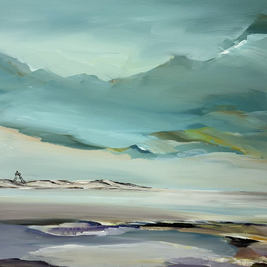 Schilderij, acryl op doek. ‘Het wad, rechtsonder gemonogrammeerd ‘GH’ = Gerda Hulsinga (Leeuwarden, 1952)
