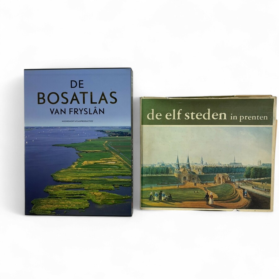 Lot van twee boeken: de Bosatlas van Fryslan, uitgave Noordhoff 2009, en 'de Elf Steden in Prenten'