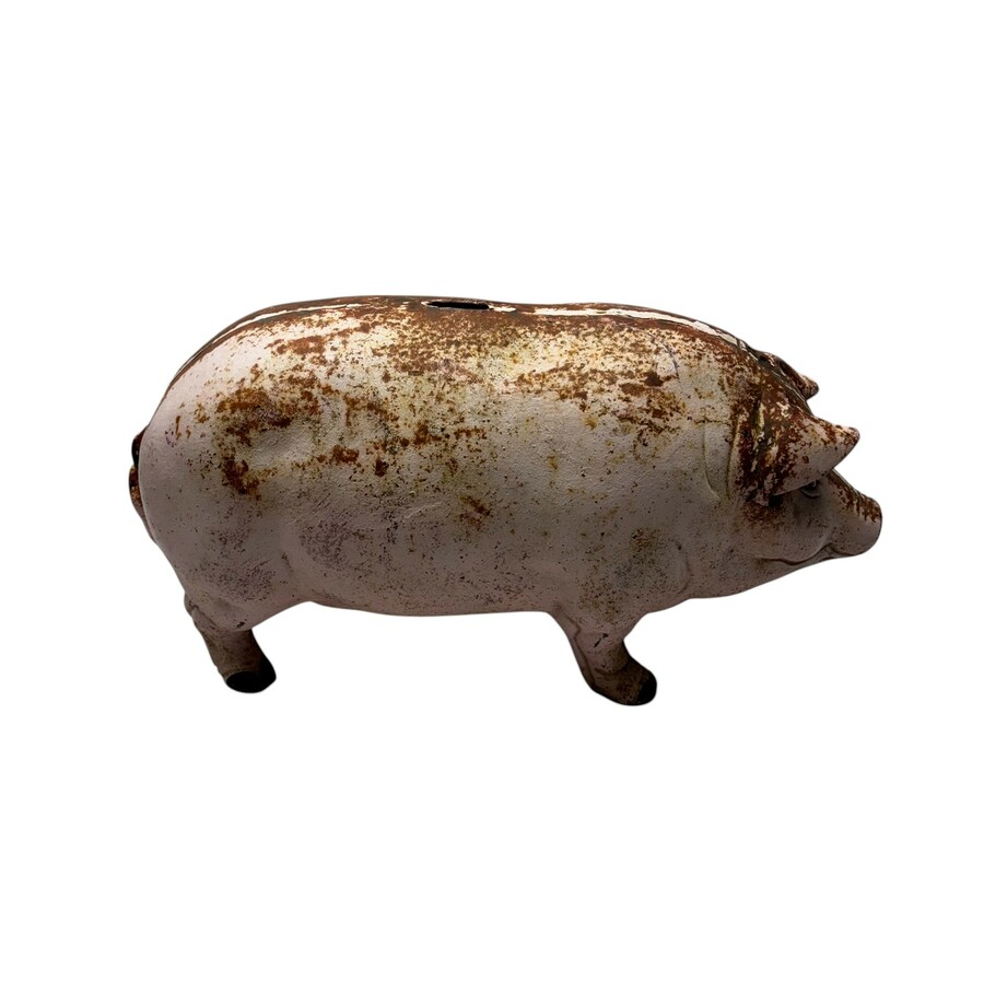 Een groot 20e eeuws gietijzeren spaarvarken.