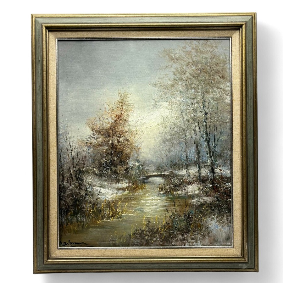 Schilderij, olieverf op doek. Winterlandschap. Linksonder gesigneerd Peter Brouwer (Utrecht 1935 - 2010). In profiellijst.