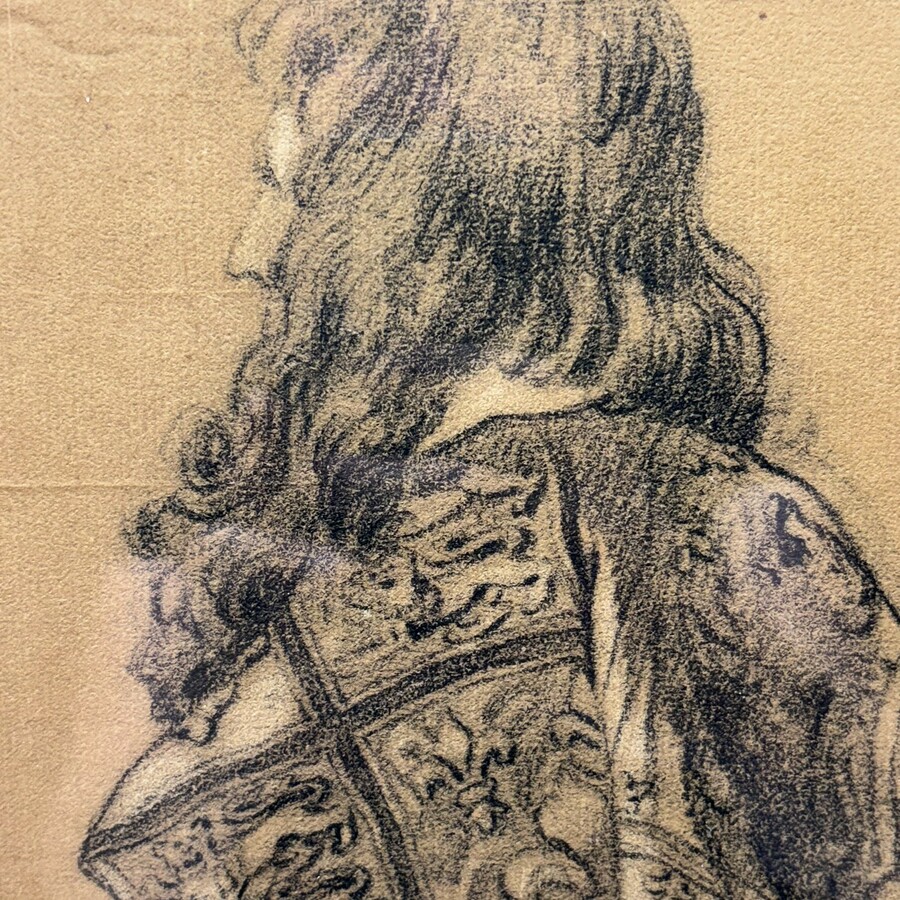 Potloodtekening op papier, voorstelling van een man, Orde van de Kousenband. Ongesigneerd, Hollandse School 19e eeuw