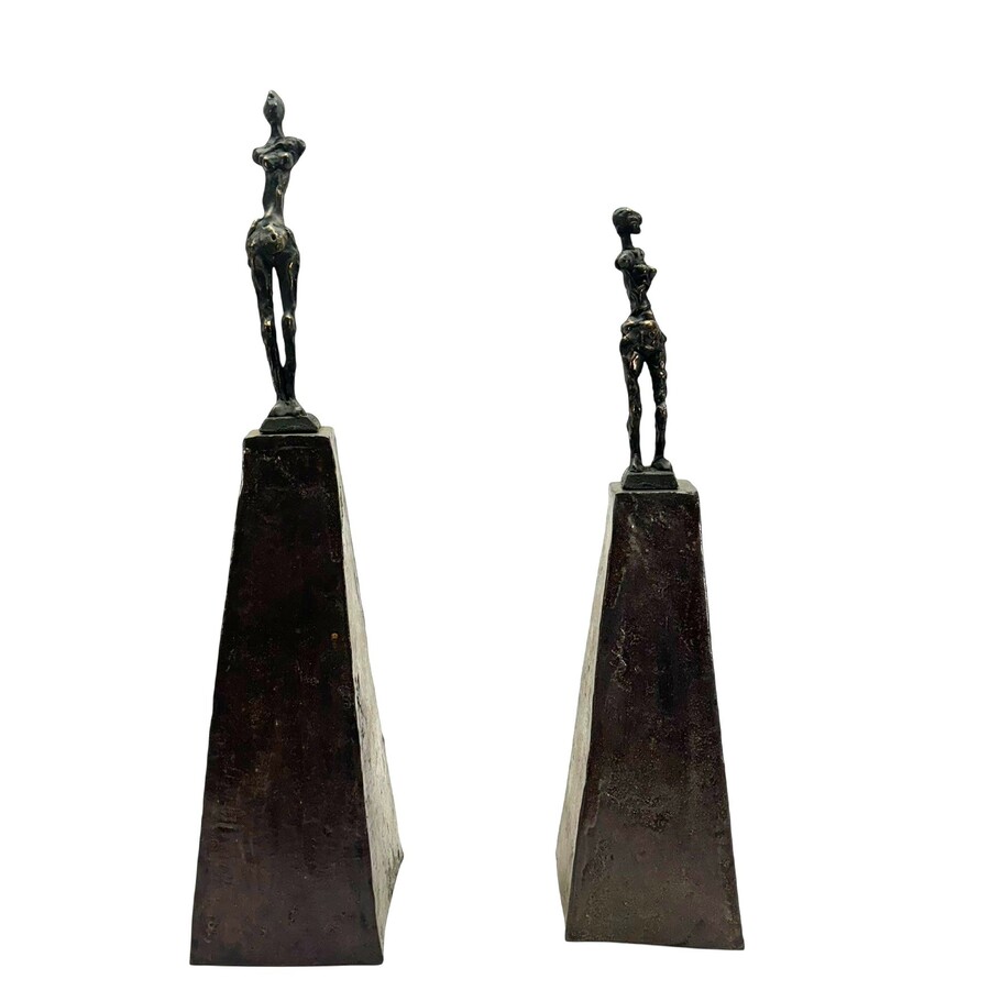 Lot van twee moderne bronzen sculpturen, vrouwfiguren, op keramieken sokkels. Beide aan de onderzijde gesigneerd 'Jissy' = Jissy Keuenhof (Kampen, 1970), gedateerd 2003.