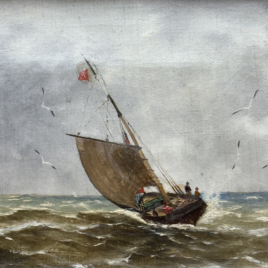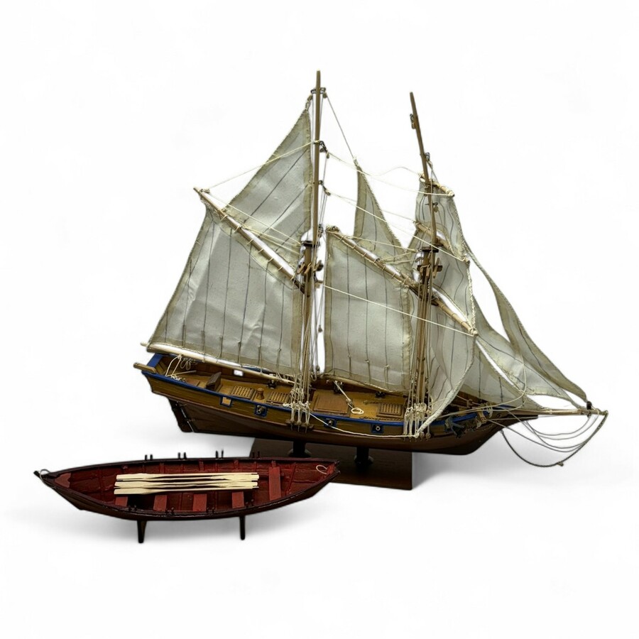 Lot van twee scheepsmodellen: handgebouwd model van een Amerikaanse kustwacht brik, en een bijboot voor Amerikaanse vissers aan de oostkust