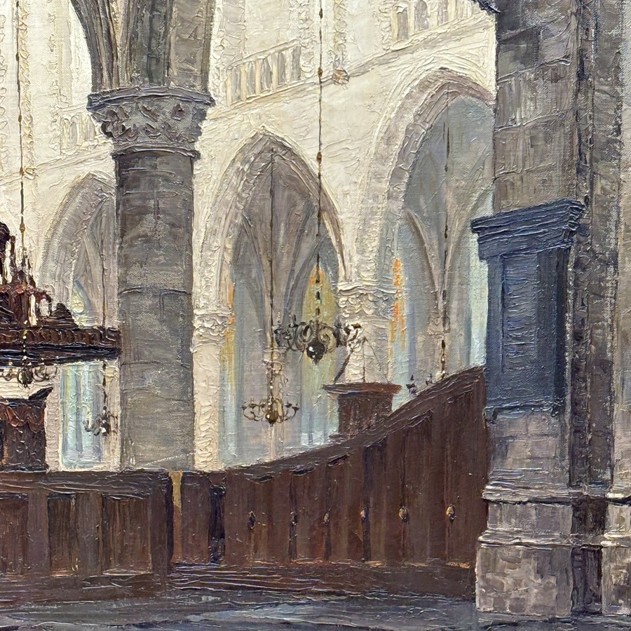 Schilderij, olieverf op doek. Kerkinterieur, rechtsonder gesigneerd Arij Albert Willem Verhorst (Enkhuizen 1879 - 1972).