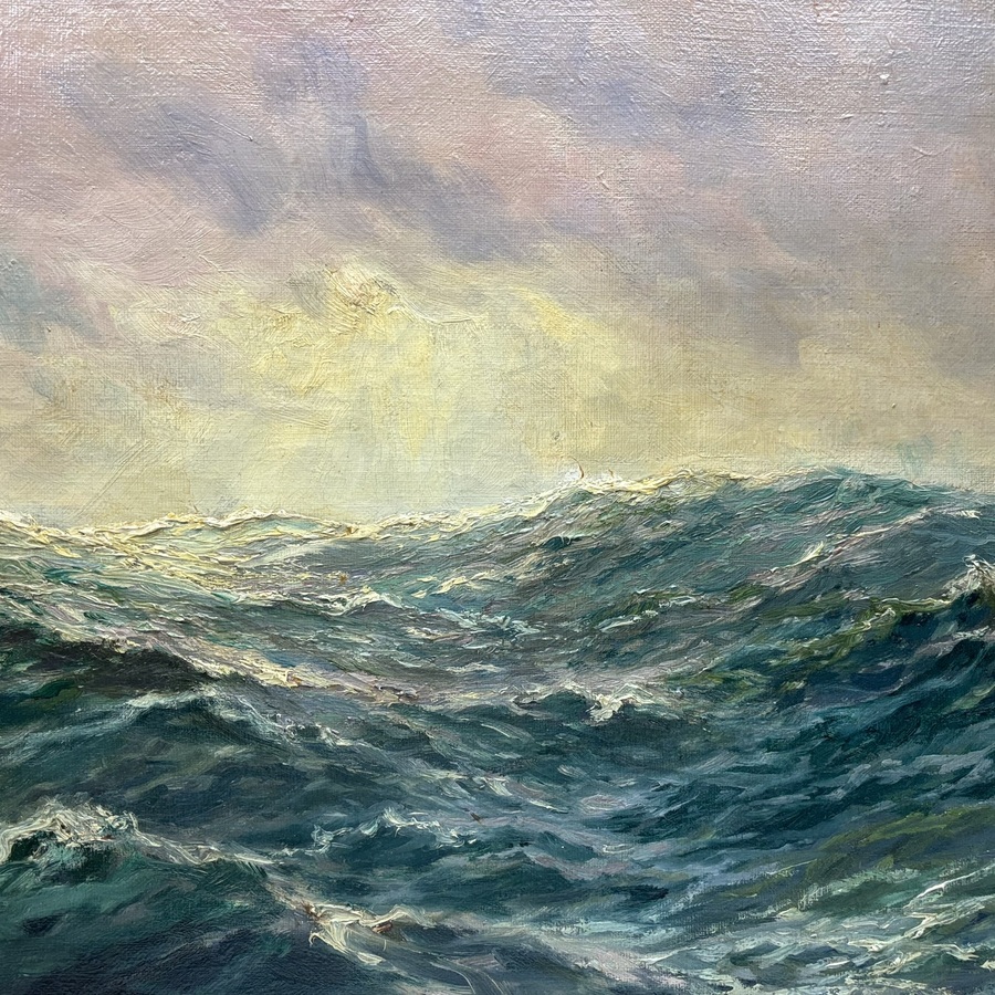 Schilderij, olieverf op doek. Zeegezicht, linksonder gesigneerd Adolf Bock (Geb 1890-1968), gedateerd 1930. Gelijst.