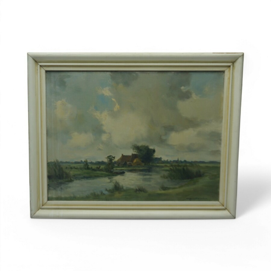 Schilderij olieverf op doek. Boerderij aan de vaart. Gesigneerd G. H. van der Meulen (1889-1951).