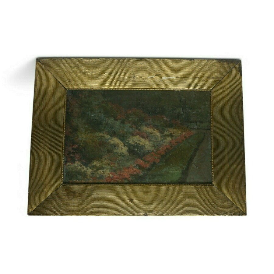 Een schilderij olieverf op doek. Impressionistich gezicht op de tuin. gesigneerd Alice Dannenberg (1861-1948).