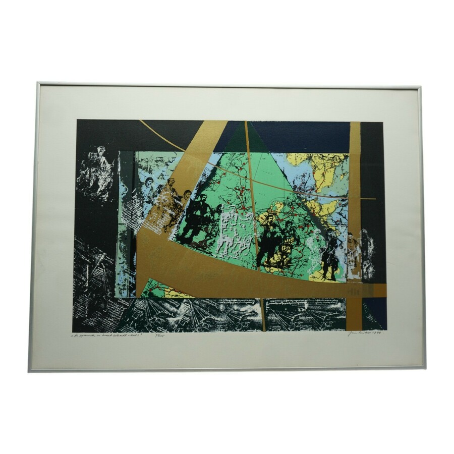 Zeefdruk op papier, ‘Pyramide in kaart gebracht’. Gesigneerd Jan Linders (1942-1996), gedateerd 1988.