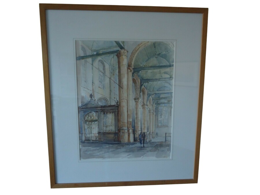 Aquarel op papier, kerkinterieur. Rechtsonder gesigneerd Victor Bouter (Voorburg 1928-2004).