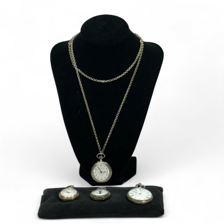 Lot diverse vroeg 20e eeuwse zilveren dameszakhorloges, waarvan één aan een zilveren jasseroncollier